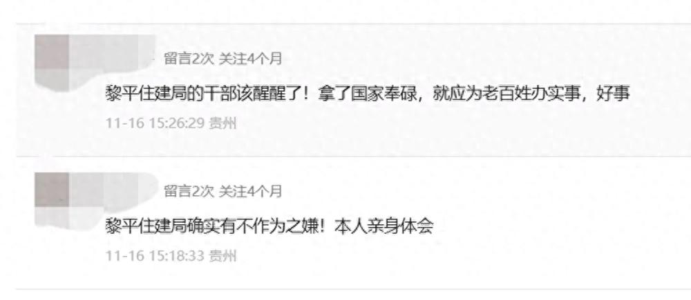 2025年11月13日,记者以题为《贵州黎平县住建局被指不作为乱作为业主诉求迟迟不予解决》一文,报道贵州黎平县业主投诉黎平县住房和城乡建设局(下称黎平县住建局)涉嫌不作为乱作为,引发当地网友关注和热议。有网友评论称:黎平住建局的干部该醒醒了!拿了国家奉碌,就应为老百姓办实事,好事。