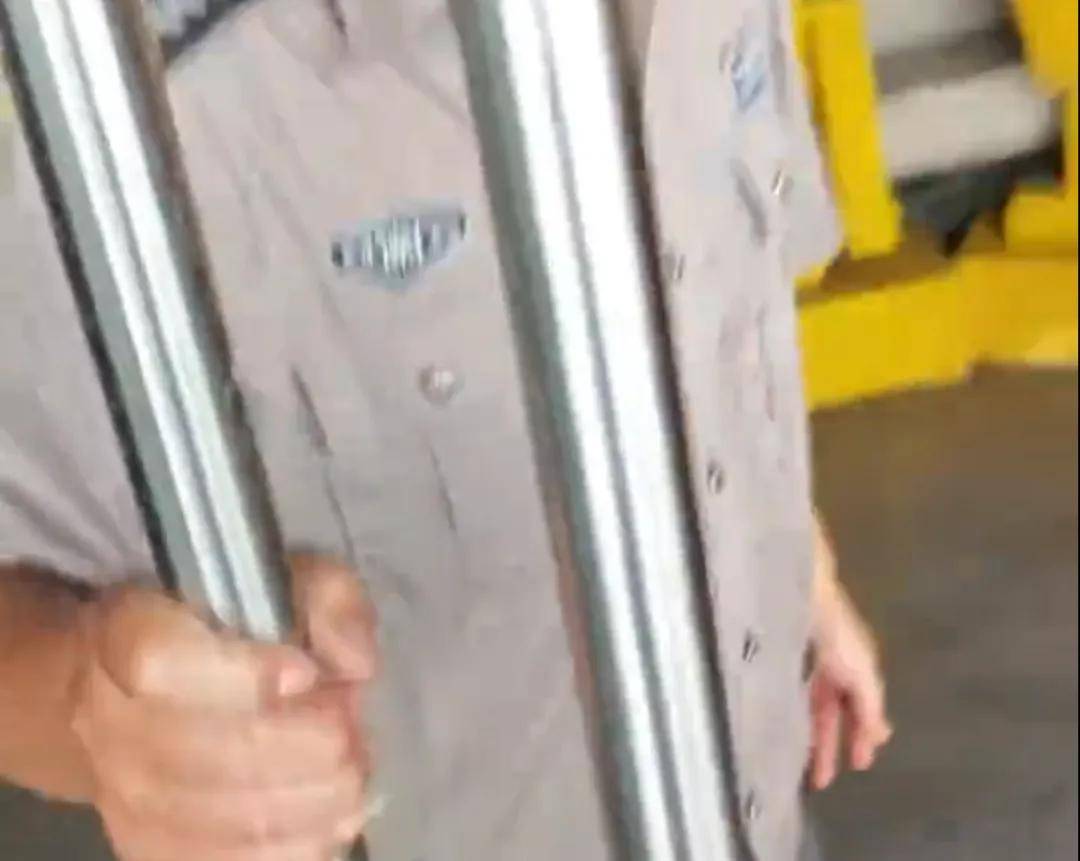 网友发布的视频显示:室外下着雨,网友在室内说“在苏州慈善所(总会)门口待一会都不行吗?”保安随即向网友走来,摆了摆手,关上了玻璃门。